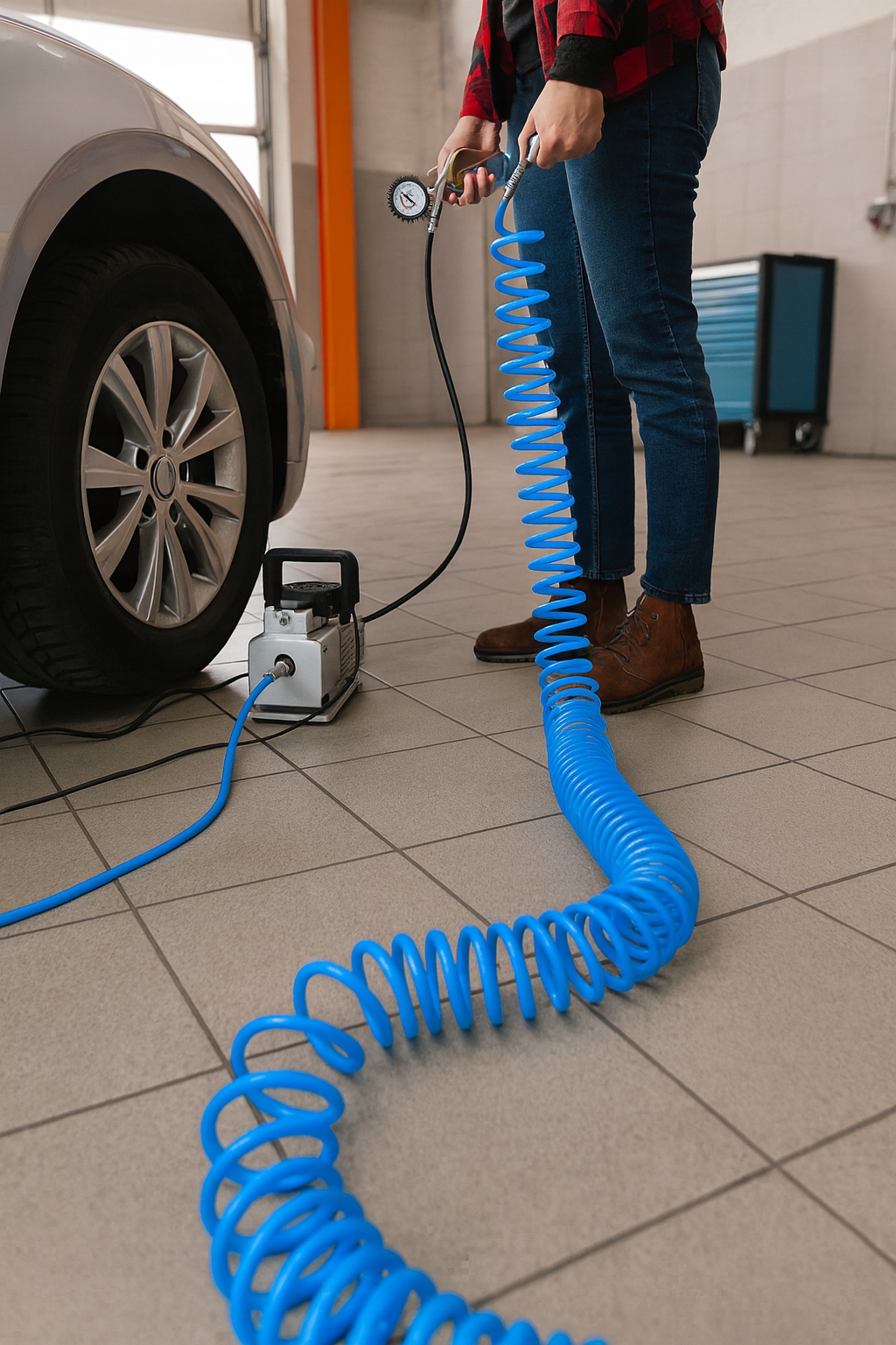 Поліуретановий спіральний шланг використовується для передачі повітря в стандартних пневматичних системах. Шланг не схильний до гідролізу та має гарну стійкість до впливу озону та мікроорганізмів.