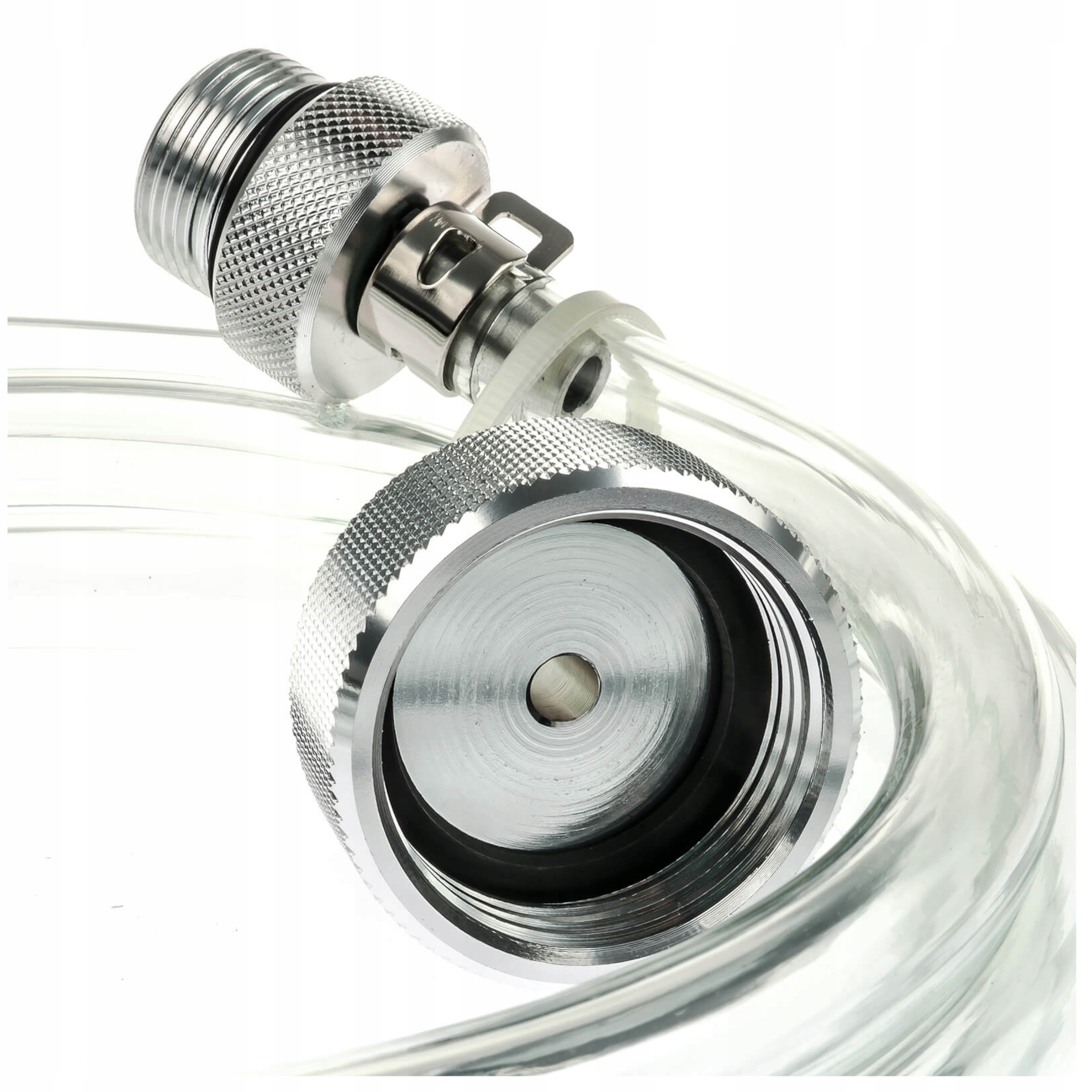 - Зливний шланг має перехідник, який, загвинчивши його в масляний фільтр, відкриває клапан, і масло тече через прозорий шланг. На іншому кінці шланга є універсальна заглушка з різьбленням, яка дозволяє монтувати його на зливний бачок.