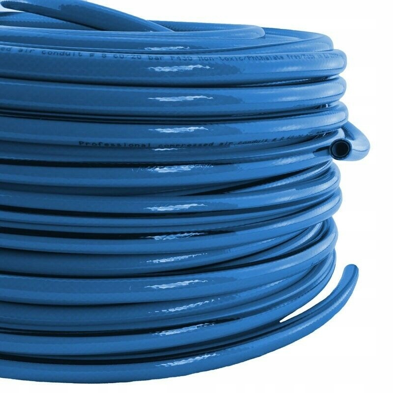 Професійний шланг для стисненого повітря виготовлений із 4-шарового ПВХ. Він дуже стійкий до розтріскування і розшарування. Його основне застосування — перекачування стисненого повітря під тиском 20 бар (при 20°C). Максимальний тиск становить 60 бар (при 20°C). Він дуже добре працює при низьких і високих температурах від -40°C до +70°C. Змія блакитного кольору. Максимальна довжина в одній секції 50м.