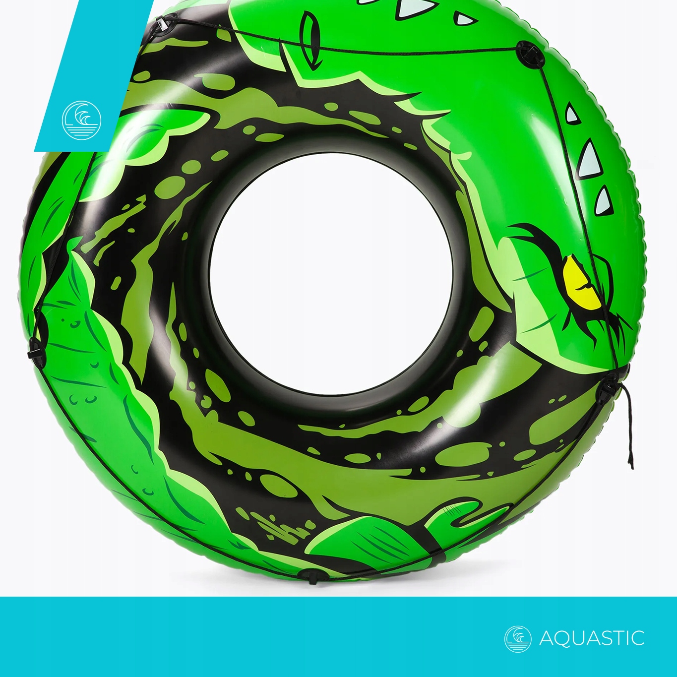 Надувне кільце AQUASTIC вражає своїм яскравим зеленим кольором і малюнком крокодила. Це робить цю модель дуже помітною у воді, що в свою чергу підвищує рівень безпеки під час гри. Дітям також сподобається ця колірна схема, і вони заохочуватимуть їх користуватися колесом.