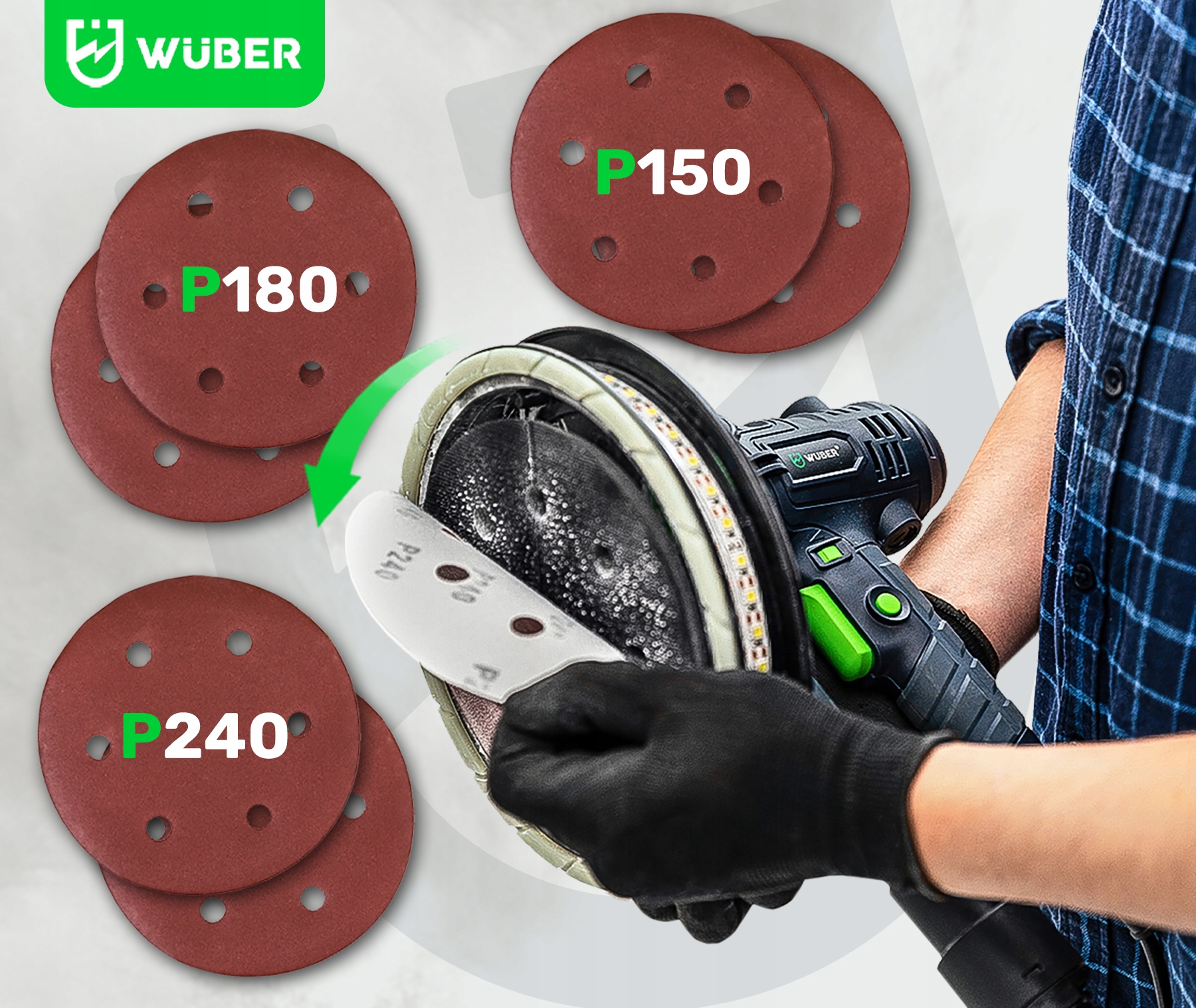 - Завдяки отворам на папері можна легко відсмоктувати пил, який утворюється під час поверхневого шліфування. Це набагато краще рішення, ніж лише видалення пилу з країв