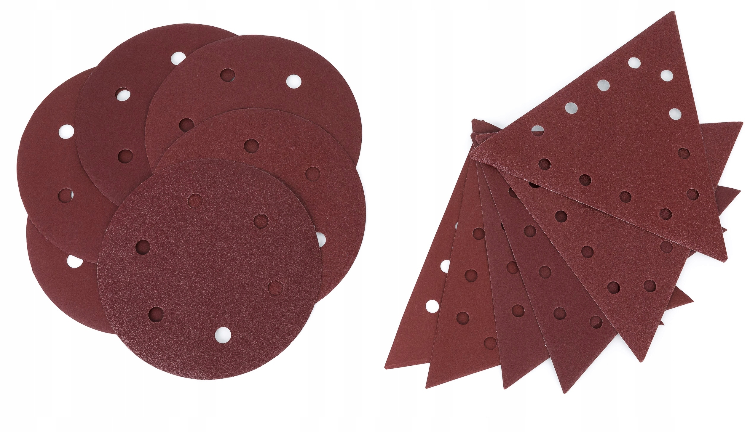 У набір входить 6 шматків круглого та 6 шматків трикутного наждачного паперу з отворами для відведення пилу