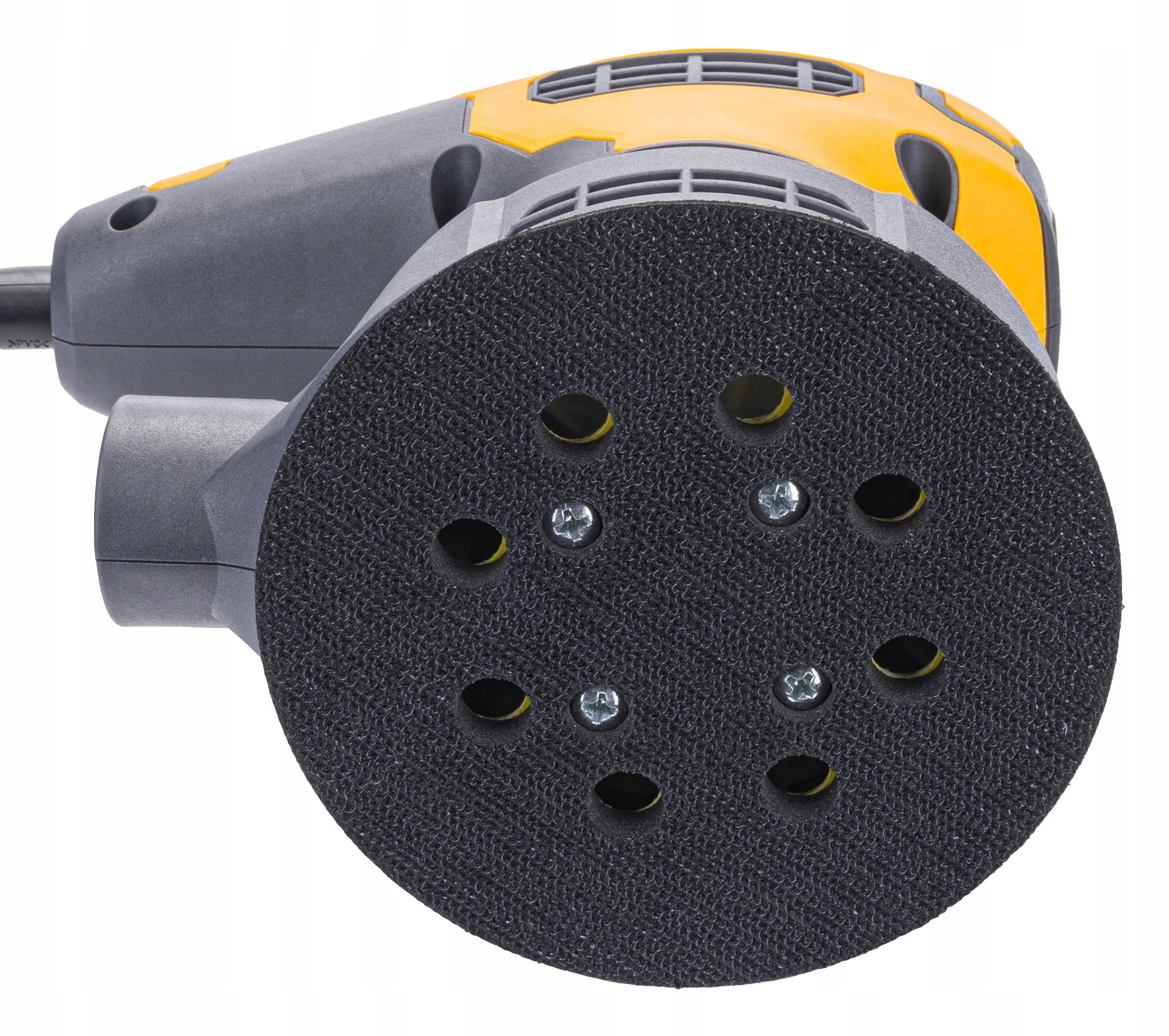 Пристрій працює з абразивним матеріалом діаметром 125 мм із застібкою на липучці та вісьмома отворами для видалення пилу.