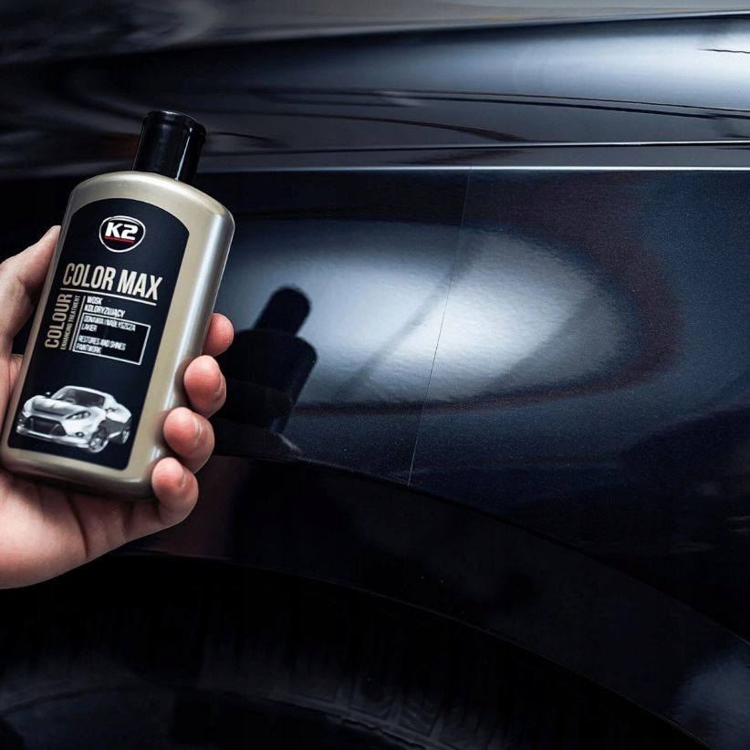 k2 кольоровий макс, встановлений у чорному відтінку - ідеальне рішення для тих, хто хоче відновити блиск темного лаку. Завдяки цьому наборі, ваш автомобіль відновлює інтенсивний колір, маскуючи невеликі функції та подряпини.