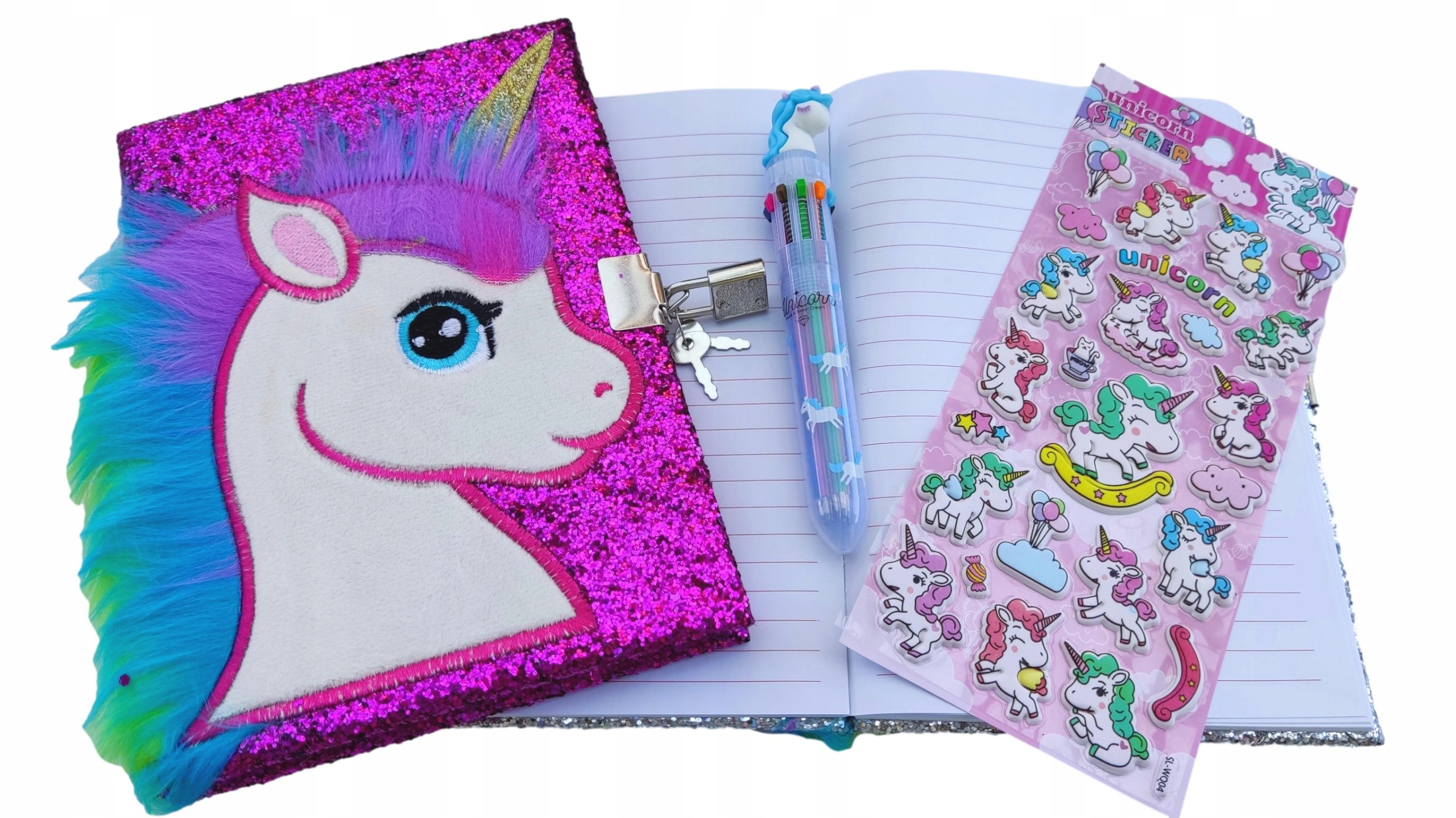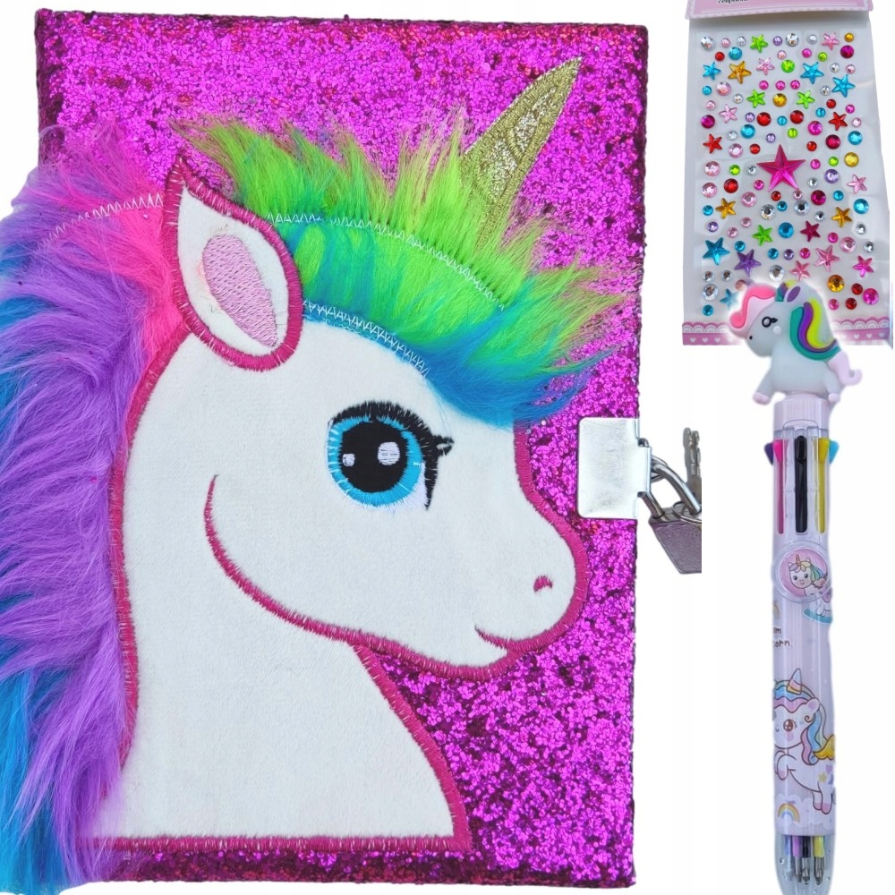 БЛИСКУЧИЙ РОЖЕВИЙ ЩОДЕННИК ЄДИНОРОГА З КОЛЬОРОВОЮ ГРИВОЮ ПЛЮС БЕЗКОШТОВНІ ПОДАРУНКИ: РУЧКА ТА РОМБАЧНИЙ АБО ОПУКЛИЙ СТІКЕР