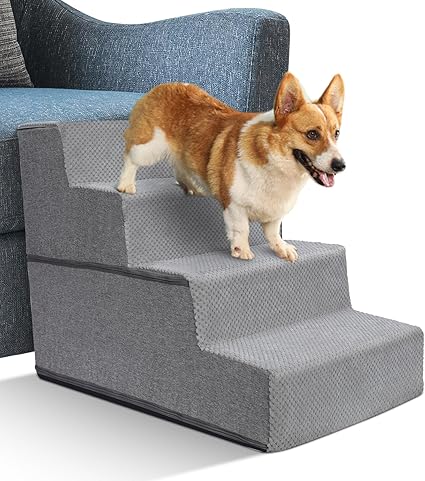 - Сходи з пінопласту 30D для собак - сходи для собак виготовлені з пінопласту високої щільності 30D, стабільного та довговічного, з хорошою еластичністю. Дозволяє домашнім тваринам безпечно залазити на диван і ліжко та ефективно запобігає падінням і травмам.