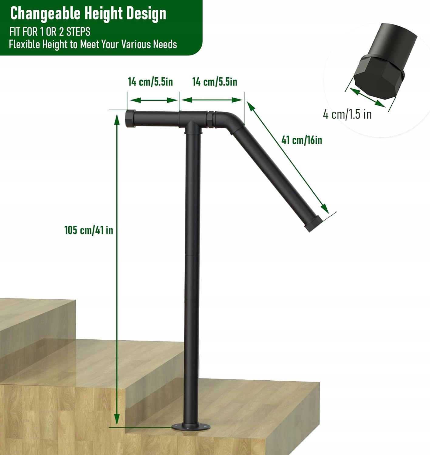 Завдяки простому наборі встановлення, збірка швидка і неприємна. Зовнішній поручник ідеально підходить на сходах, забезпечуючи безпеку та підтримку.