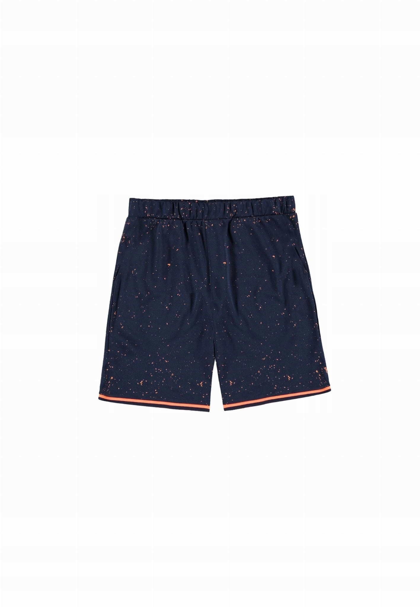 Шорти виготовлені зі 100% дихаючого поліестеру, який часто зустрічається у виробах цього типу. Мають досить глибокі кишені. Шорти зтемно-синього матеріалу прикрашені помаранчевими деталями - точками і гумками на штанинах. На талії також є широка еластична стрічка, яка адаптується до потреб користувача без необхідності зав’язувати вузли, які можуть розв’язатися в ключовий момент гри.