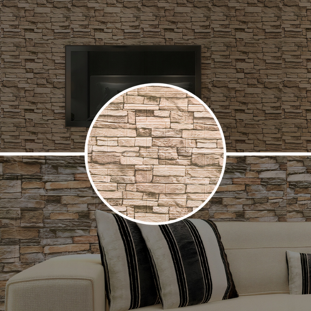 Самоклеючі шпалери, що імітують цеглу - це виріб зі спіненого поліетилену, який має фантастичну звукоізоляцію, водо- та температурну ізоляцію. Він гнучкий, легкий, стійкий до пошкоджень, без запаху. Незважаючи на те, що це екологічно чистий природний матеріал, він не схильний до грибкових інфекцій і стійкий до нападів комах.