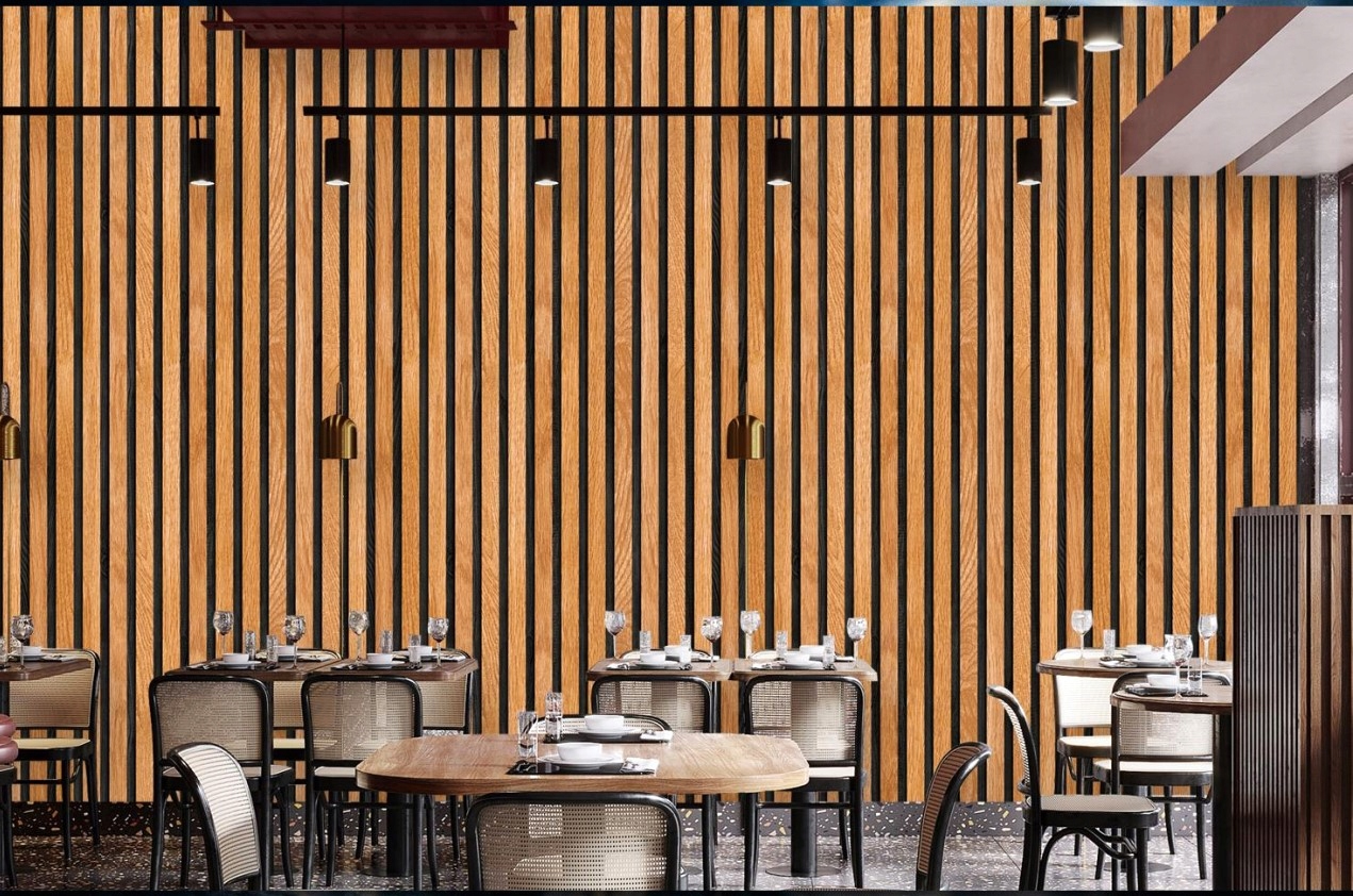 Ці унікальні шпалери в стилі ламелі - ідеальний спосіб додати елегантності та унікальності вашому інтер'єру. Його візерунок ламелі натхненний красою натуральних дощок, що надає йому необробленого сучасного характеру.
