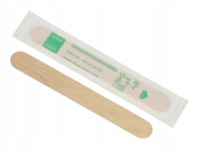 Шпатель ЛОР дерев'яний з берези, одноразовий, стерильний або нестерильний. Вони використовуються для утримування язика для полегшення огляду порожнини рота або горла.