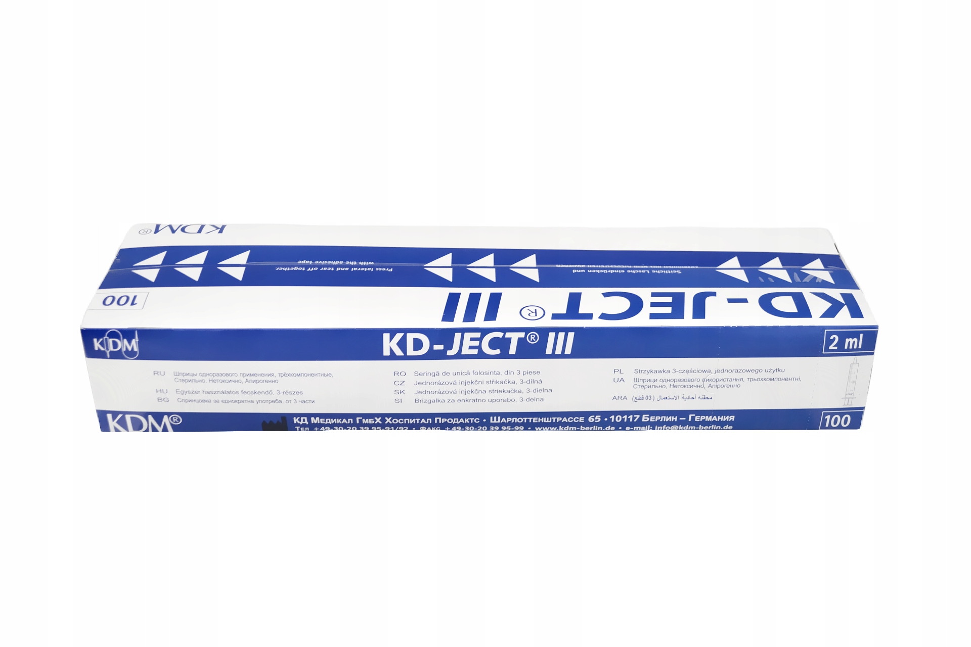 KD-JECT III — це серія стерильних шприців Luer Lock, розроблених для одноразового використання, які забезпечують повний контроль і точність при ін'єкційному введенні ліків. Ці шприци, що складаються з трьох частин – циліндра, поршня та гумового ущільнення, гарантують безпеку та ефективність під час введення ліків і збору зразків рідин організму.