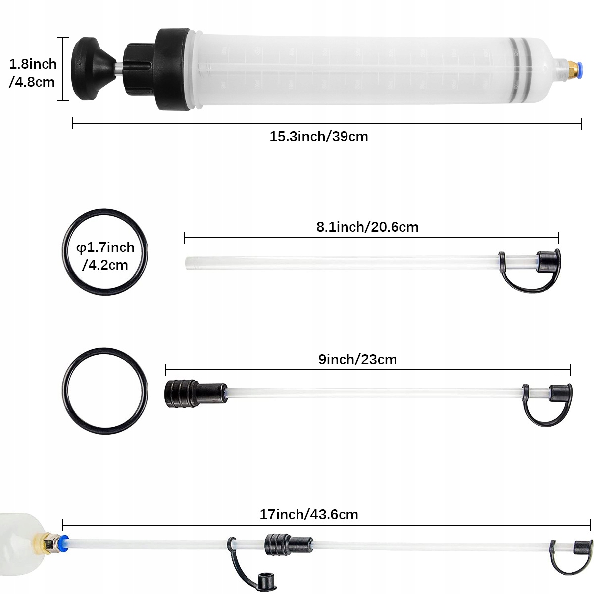 - ⭐️ ПОРШНЕВА ВЕНТИЛЯЦІЙНА СИСТЕМА - на протилежному кінці на шприці є поршень, який дозволяє створити вакуум всередині шприца і всмоктувати масло. Після вставлення шланга в потрібне місце і створення вакууму масло набирається в шприц, що дозволяє його безпечно та чисто видалити.