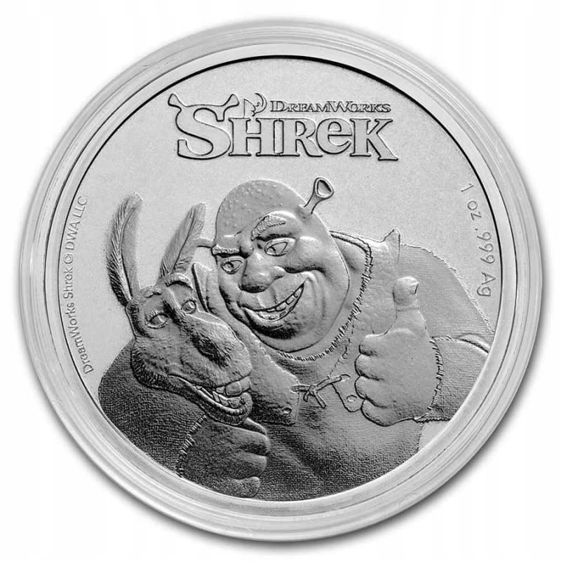 Шрек Ніуе 1 унція срібла 2021 — срібна монета на честь 20-річчя фільму.