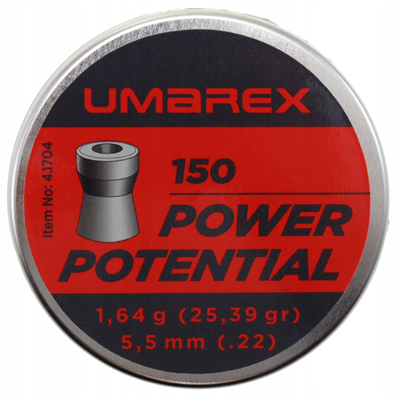 Umarex Power Potential 5.5/150 — це важка куля з порожнистим вістрям, призначена для розважальної стрільби. Він важить 1,64 г, що робить його найкращим для коротких і середніх дистанцій, забезпечуючи стабільну траєкторію польоту та потужний удар.