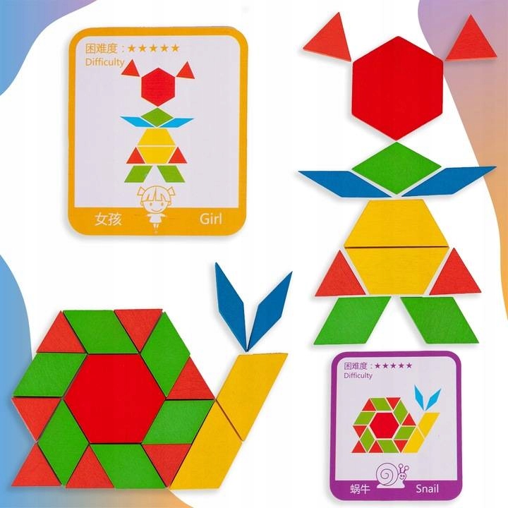 Набір дерев'яних пазлів різної форми та яскравих кольорів пропонує безмежні можливості для розваг! Надійно виготовлений набір подарує вашій дитині години розваг. Нехай ваша дитина навчається через гру!