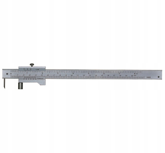 Суронциркуль виготовлений з нержавіючої сталі з діапазоном вимірювання 200 мм і відліком 0,05 мм. Він має метричну та дюймову шкалу, виготовлений із нержавіючої сталі, із фіксуючим гвинтом і запасним стилусом.