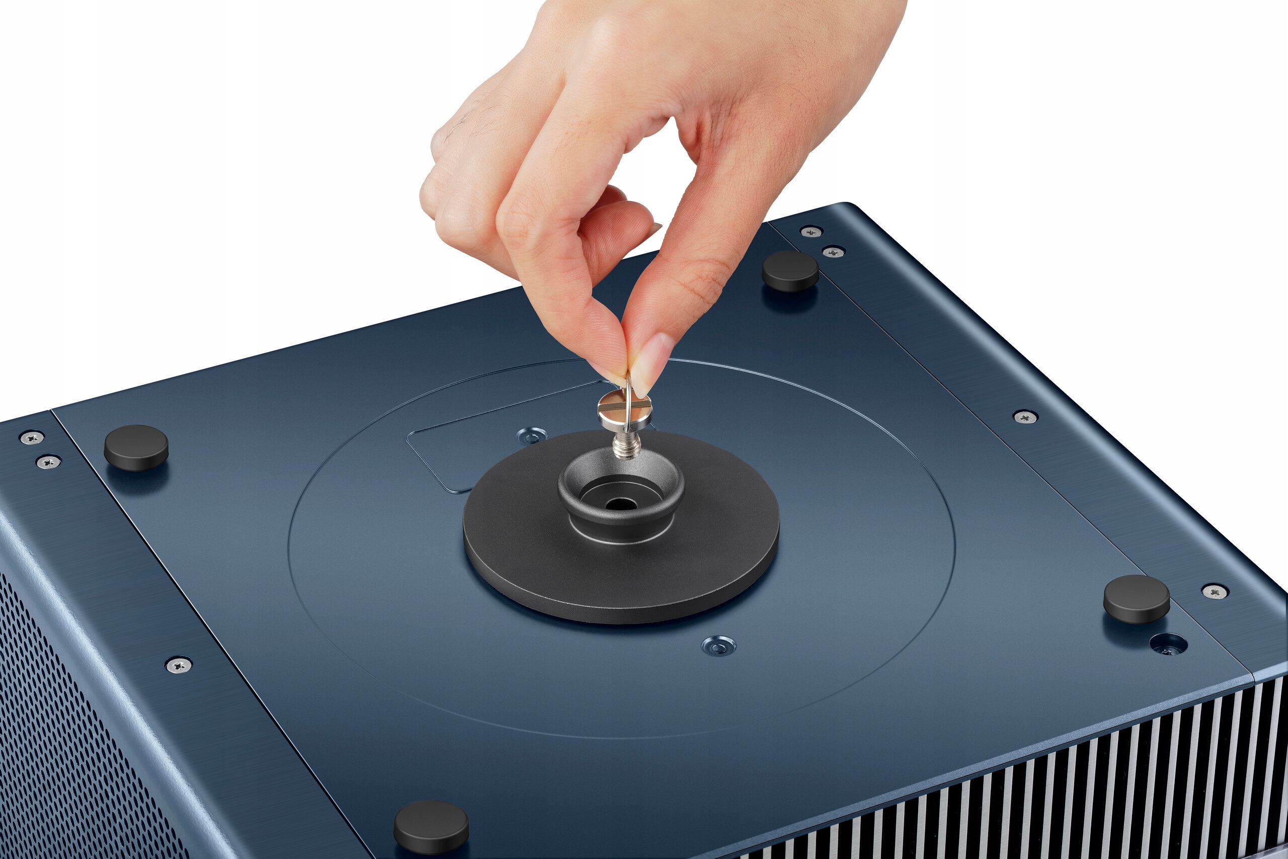Підлогова підставка для проектора Hisense C1. Він пропонує регульовану висоту в діапазоні від 58 см до 95 см, нахил на 90° і орієнтацію на 360°.