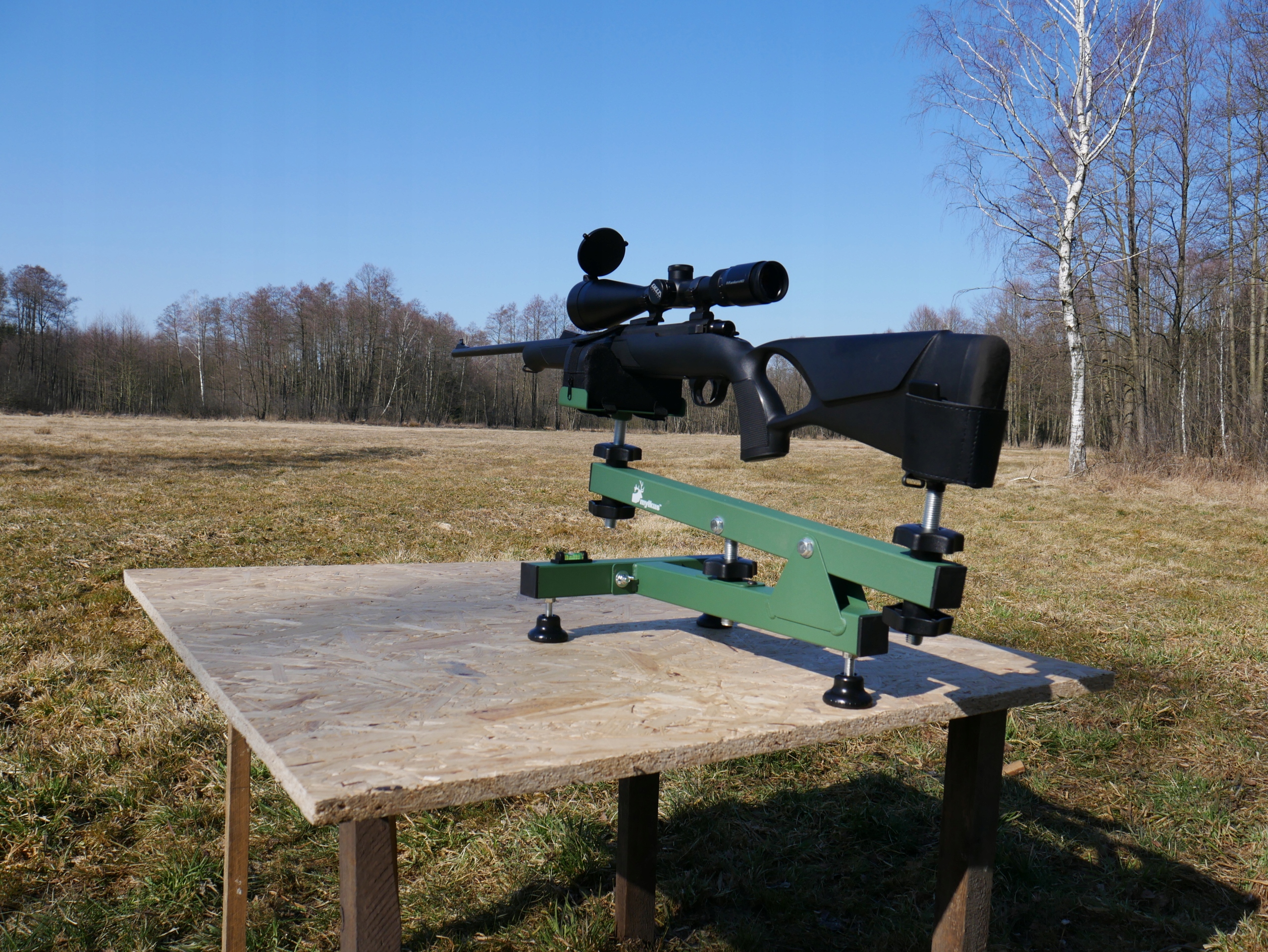 Стійка для стрільби зі зброї Myłkus — це професійний і функціональний інструмент, який дозволяє стріляти зі зброї простим і точним способом. Налаштування підзорної труби з його допомогою відбувається дуже швидко завдяки повному знерухомленню зброї на стрільця та дуже плавній настройці точки прицілювання. Покращена сталева конструкція і точні елементи регулювання дозволяють підібрати оптимальний кут нахилу підставки під час стрільби, що значно підвищує комфорт і ергономічність для стрільця, дозволяючи практично повністю виключити помилки, викликані вимушеним, неприродним положенням або вібраціями грунт, на якому встановлено стенд. Діапазон регулювання положення зброї і точки прицілювання дуже широкий і здійснюється за допомогою великих пластикових ручок. Можна відрегулювати висоту підставки за допомогою регульованих ніжок і точно вирівняти її відносно землі за допомогою рівня, що входить до комплекту. Важливою перевагою підставки є якість її виготовлення. Регулювальні ручки виготовлені із загартованого, стійкого до тріщин пластику, а ребристі нековзні ніжки з твердої гуми запобігають неконтрольованому ковзанню. Також варто відзначити спеціальну антивібраційну подушечку для зброї з твердого пінопласту, яка відмінно усуває вібрації і не передає їх на зброю, що має велике значення при стрільбі зі зброї, і не є стандартом серед не завжди більш дешевих стрілецьких стендів. Подушка має дуже міцну застібку-липучку, яка додатково стабілізує зброю і запобігає її зміщення при регулюванні підставки. Обираючи підставку Myłkus, ви обираєте якість продукту та гарантію задоволення.