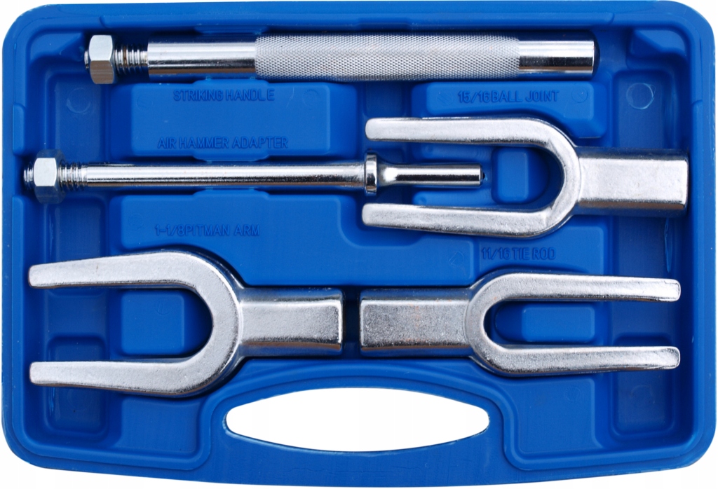 Набір використовується для демонтажу цапф підвіски та кінців рульової системи. Все в елегантній валізі.