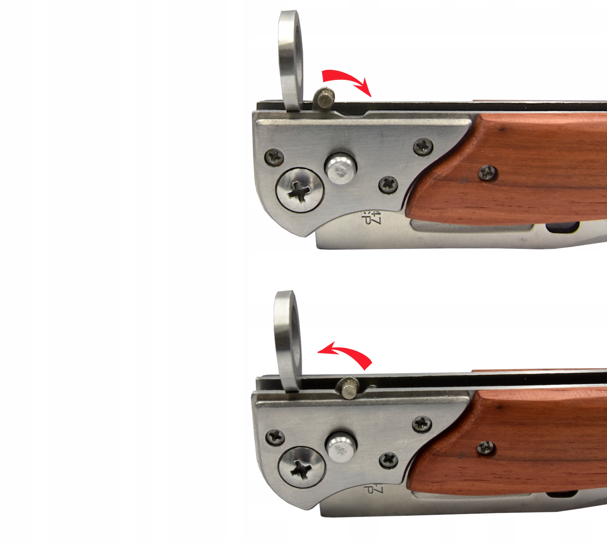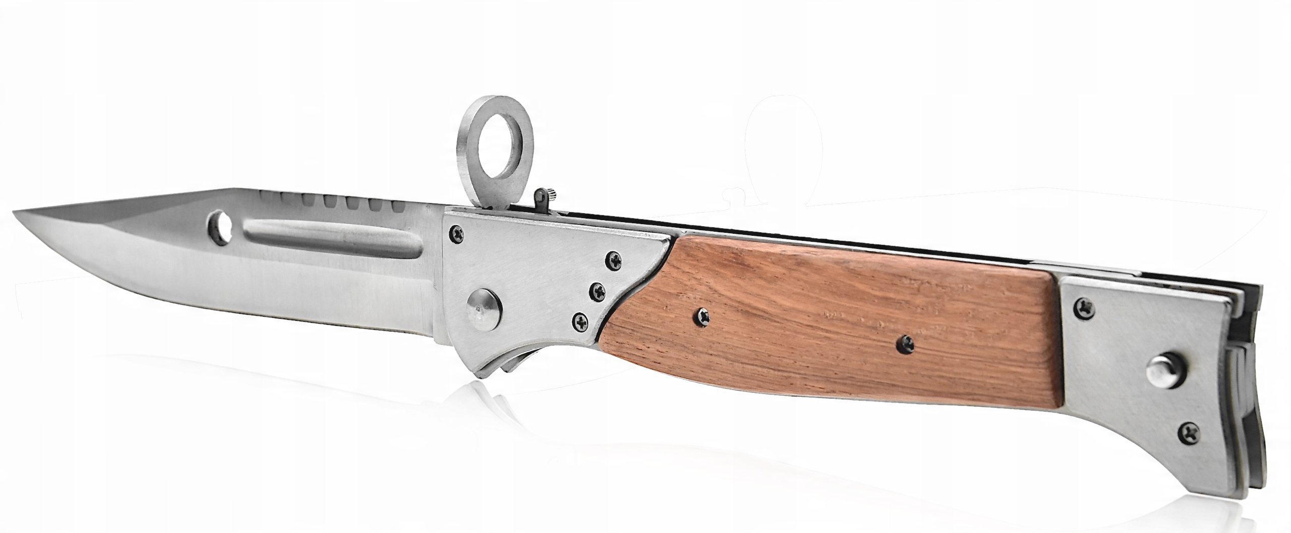 AK-47 – це повністю пружинний ніж, який можна лише відкривати та закривати лише за допомогою кнопки. Багнет має «запобіжник», тобто додатковий фіксатор у вигляді важеля, який запобігає випадковому відкриванню ножа. Ніж можна успішно використовувати