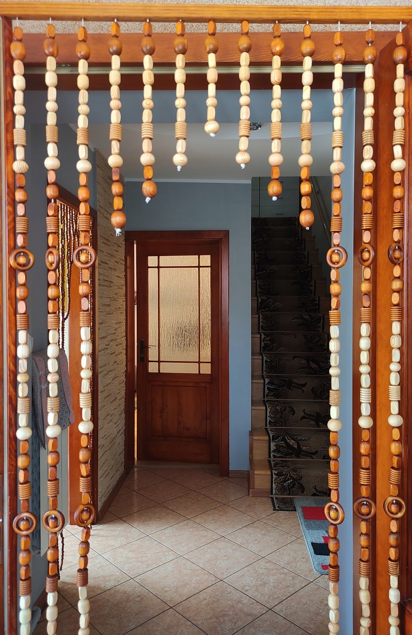 - намистини, нанизані на нитку, оздоблені дерев’яною смугою