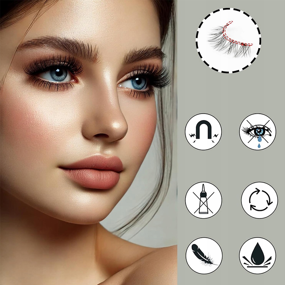 Завдяки інтуїтивно зрозумілим інструментом для застосування та прозорими інструкціями, навіть новачки легко створюватимуть ідеальні вій. На відміну від традиційних штучних вій, вам не потрібен клей або підводка для очей - прощайтеся з безладом і незграбним! Всього за кілька секунд ви можете дати очам сліпуче вигляд завдяки магнітним вії, а макіяж залишається протягом усього дня.