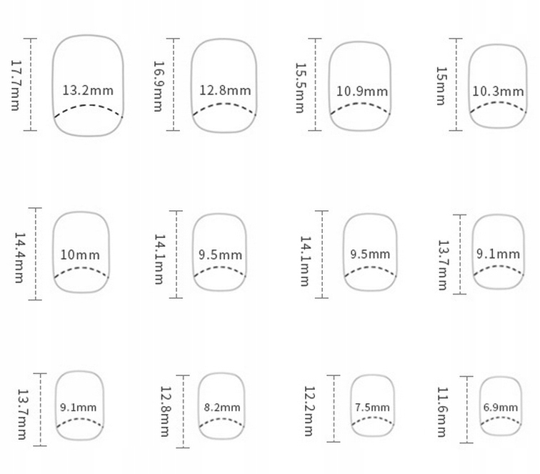 Набір має різноманітні розміри , тож ви можете ідеально відповідати штучному цвяху до вашої натуральної пластини для нігтів.