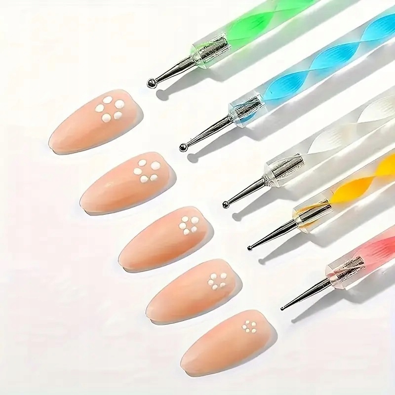 Набір із 5 двосторонніх щупів містить 10 різних наконечників для точного декорування нігтів.