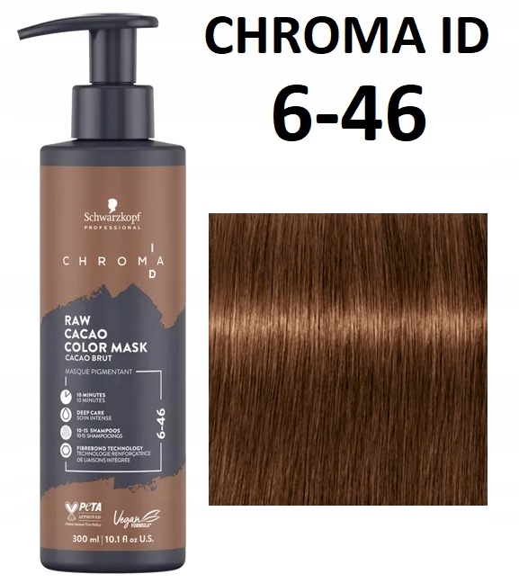 Застосування: Застосування у комерційно доступних, одноразових захисних рукавичках. Захистіть одяг, шкіру та поверхні від фарбування. Нанесіть маску на волосся, висушене рушником. Залиште на волосся в потрібний час, залежно від потрібних результатів. Щоб швидко оновити колір, рекомендується залишити маску Chroma ID на волоссі до 5 хвилин. Для більш інтенсивних результатів кольорів рекомендується залишити маску Chroma ID на волоссі від 5 до 10 хвилин. Після відповідного часу роботи ретельно промийте.