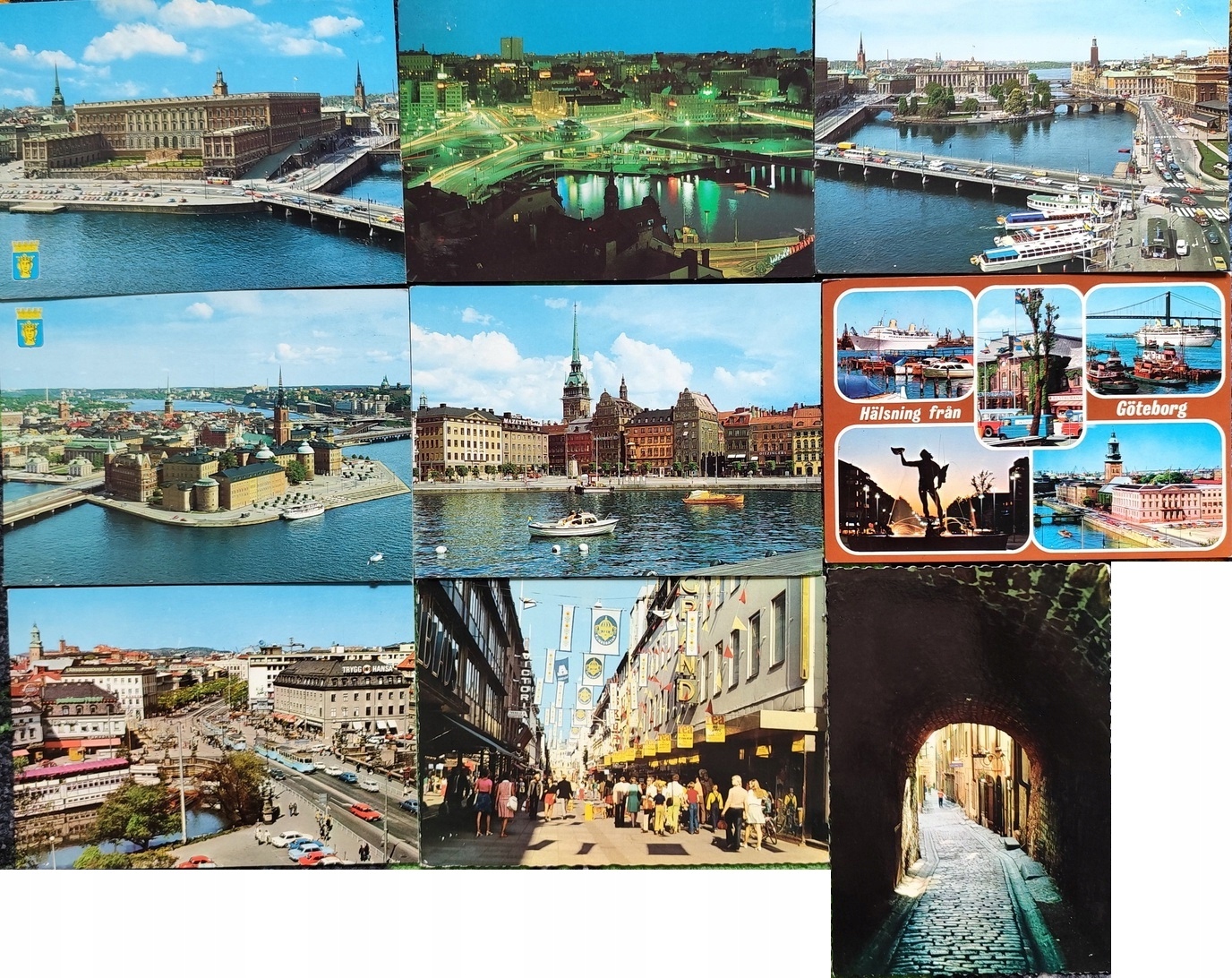 Швеція - Стокгольм (6 штук) - Готеборг (3 штуки) - 9 листівок. все без обігу. Стан - db/db+ (всі вони мають сліди клейкої стрічки на зворотному напрямку - як на фотографії (це трохи липко).