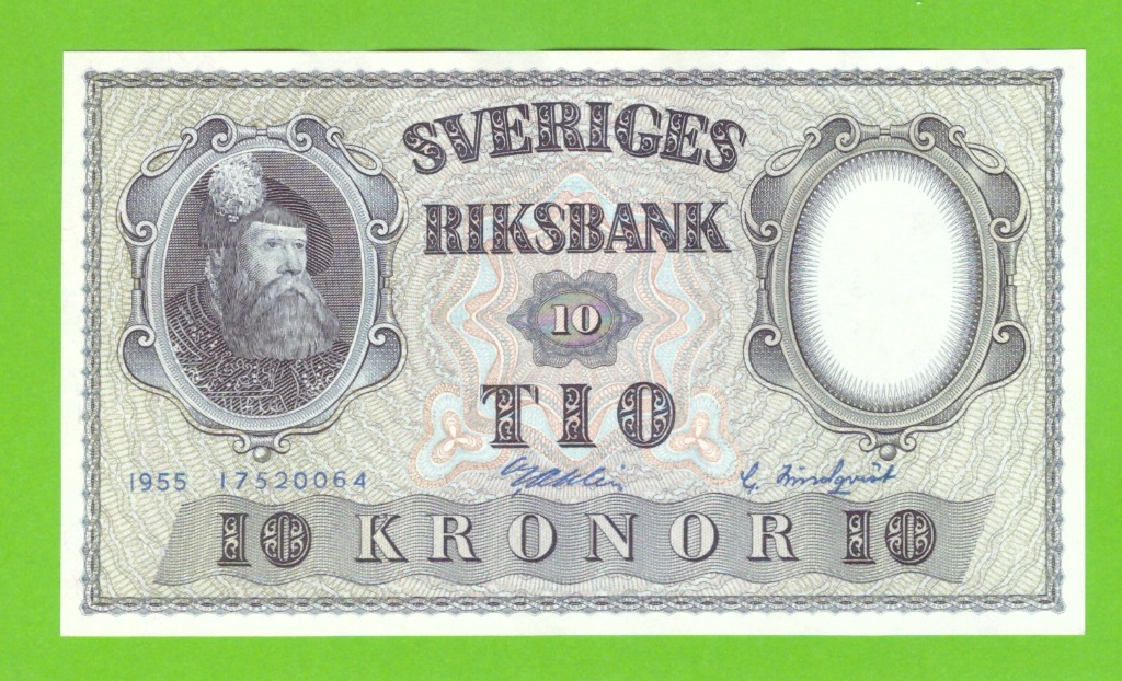 ШВЕЦІЯ 10 КРОНИ 1955 P-43c МАЙЖЕ UNC