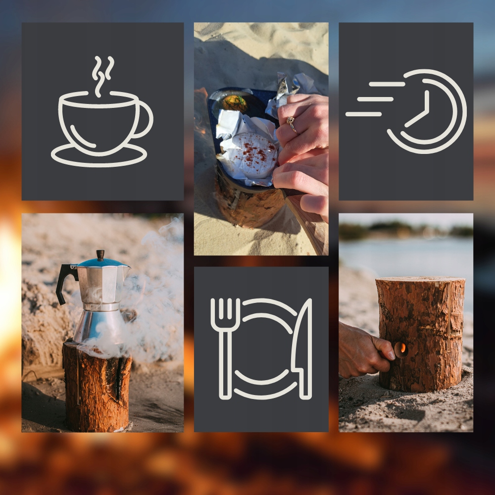 Вам не потрібно турбуватися про підготовку або збір паличок для багаття - факел готовий до використання прямо з упаковки. Лише мить, щоб запалити його, і ви зможете насолоджуватися теплою їжею або гарячим напоєм серед природи.
