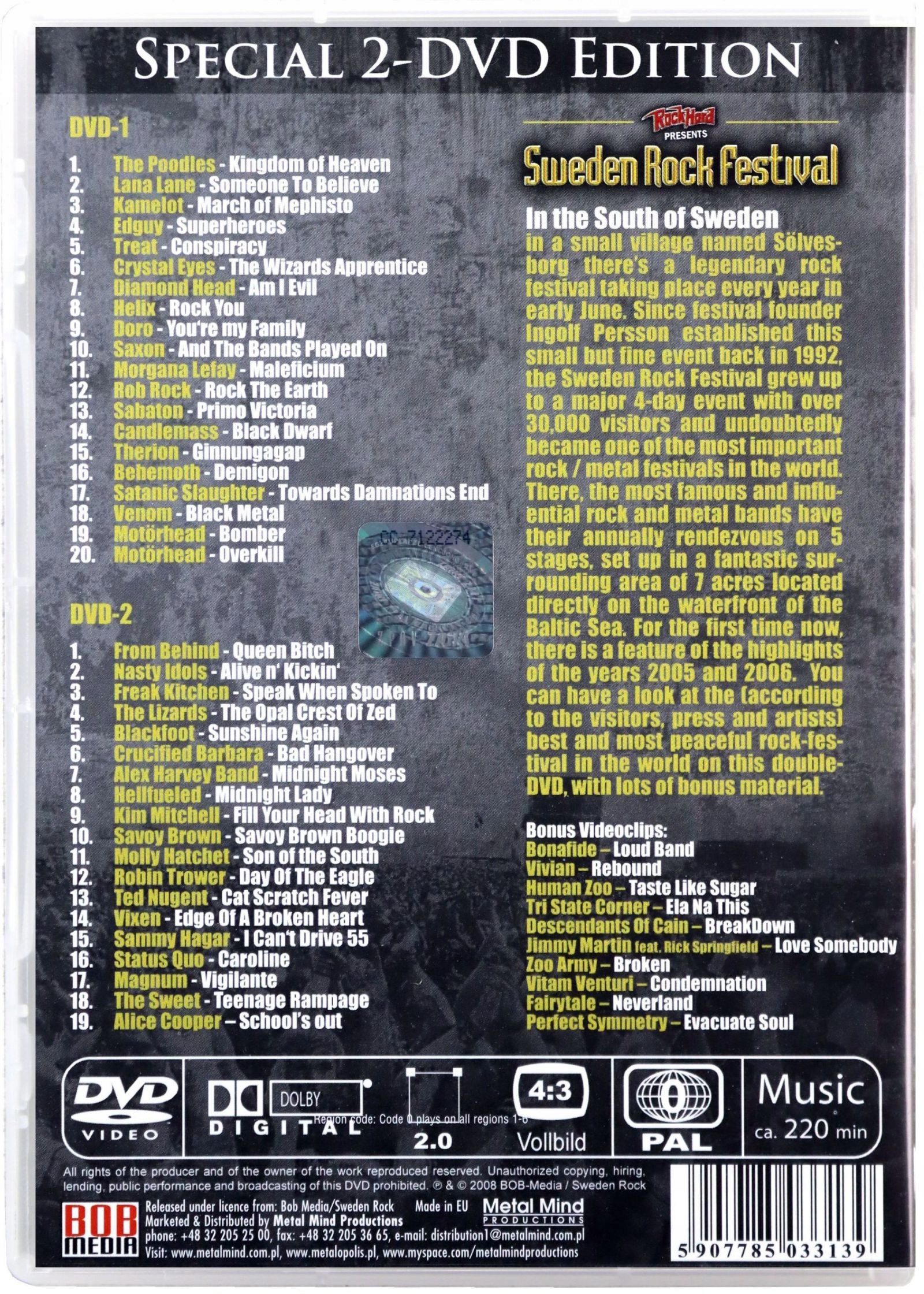 На півдні Швеції, в невеликому містечку Сольвесборг, щороку на початку червня проходить легендарний Sweden Rock Festival. Вперше фестиваль відбувся в 1992 році, ініціатором заходу був Інгольф Персон. На даний момент це один з найбільших рок і метал фестивалів у світі, який збирає понад 30 000 людей протягом 4 днів. У цьому подвійному DVD вперше зібрано найкращі виступи гуртів, які виступали на 5 фестивальних сценах у 2005 та 2006 роках, включаючи концертні пісні таких виконавців як: Motorhead, Alice Cooper, Sammy Hagar, Venom та Saxon, а також багато бонусів. доріжки, матеріали, в тому числі: ви знайдете музичні відео Perfect Symmetry та Vivian.