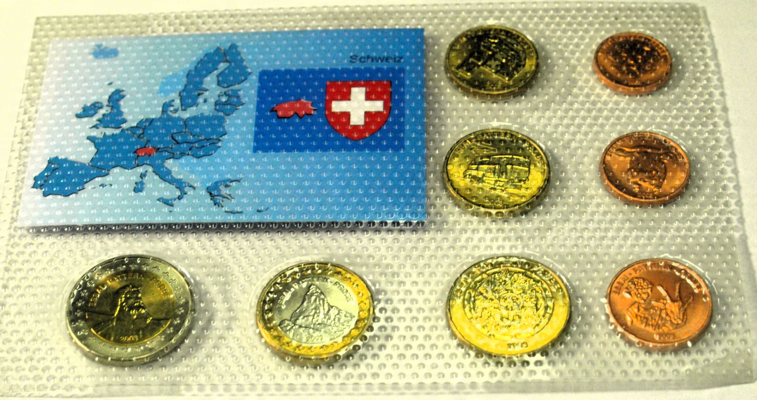 Швейцарія 2003 ЗРАЗОК 8 монет (євро) блістерний набір. Оригінал. ПЕРЕВІРІТЬ ІНШІ АУКЦІОНИ - ЗБИРАЙТЕ РІДКІСНІ ЦІННОСТІ З НУМІЗМАТО!