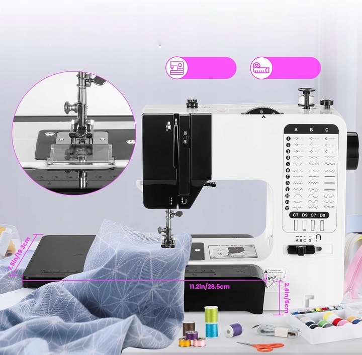 • Швейна машина набагато плавніша, ніж інші версії швейних машин, подвійна нитка та подвійна швидкість, з автоматичним перемотуванням і перемотуванням голки, без застрягання ниток, без зламаної голки, позбавляє від турбот і проблем, які можуть бути спричинені шиттям на інших старих швейних машинах~