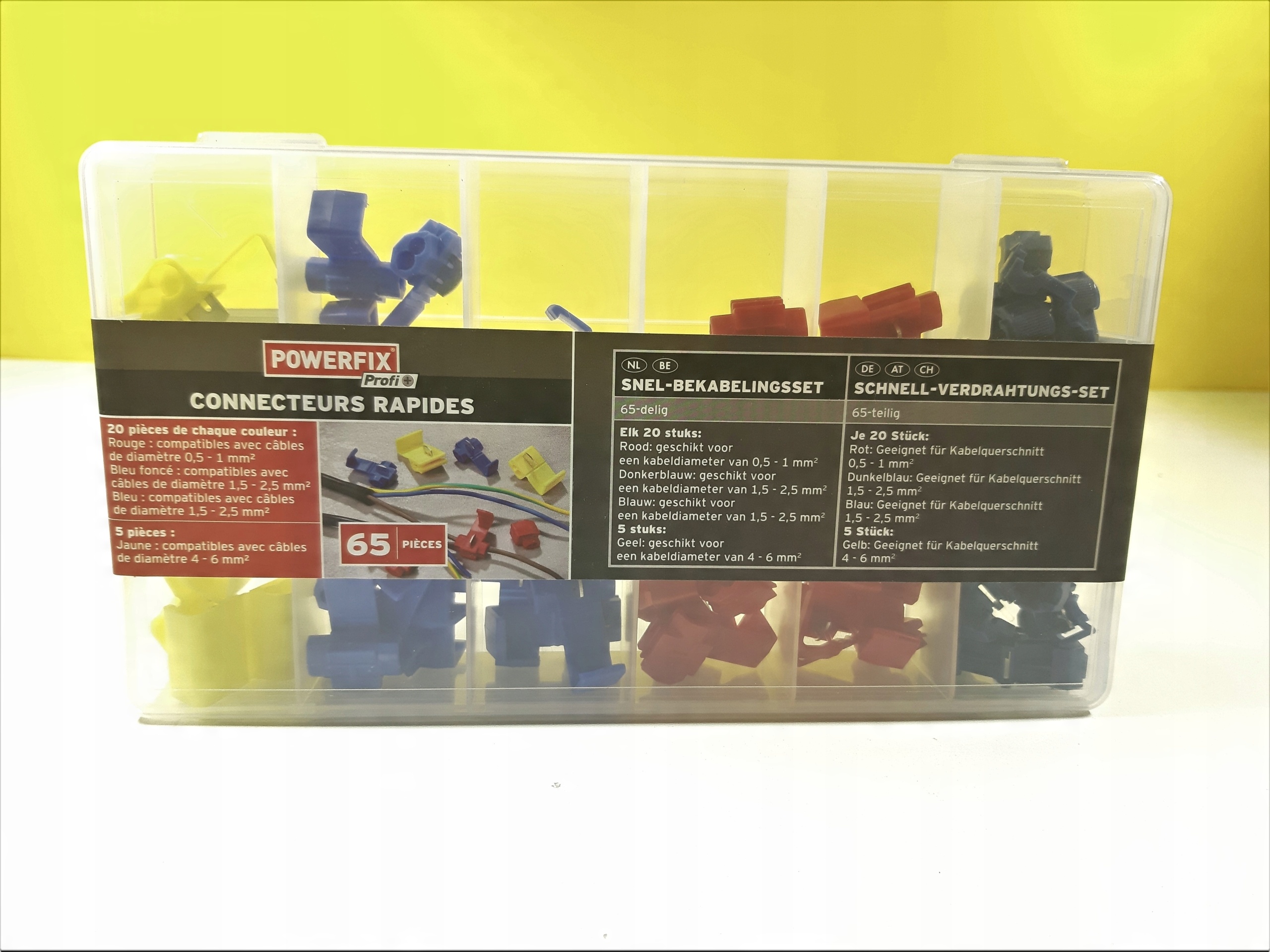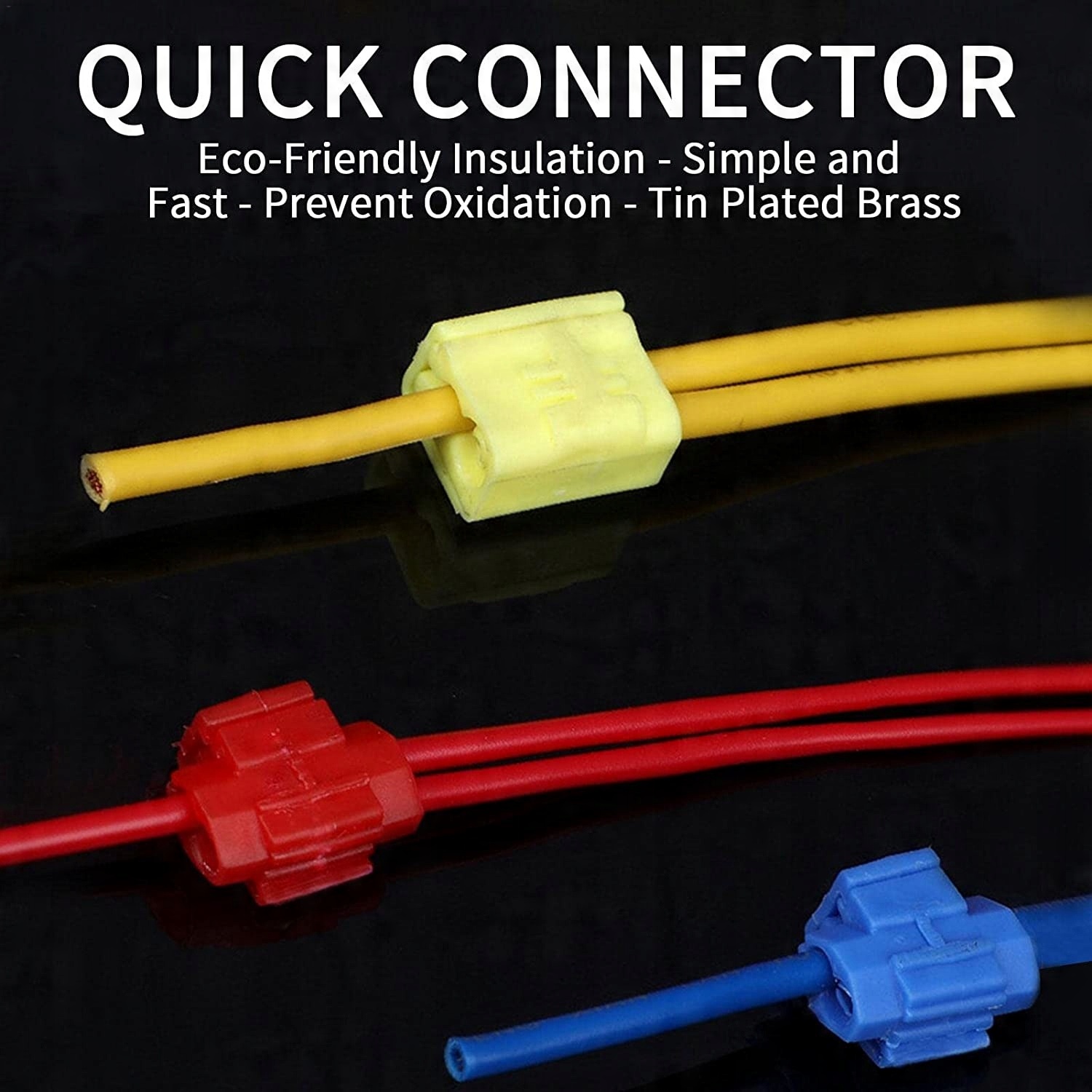 Набір швидкороз'ємних з'єднувачів у трьох кольорах і розмірах, що відповідають найпопулярнішим діаметрам електричних кабелів. Швидке з'єднання проводів без пайки та зняття ізоляції.