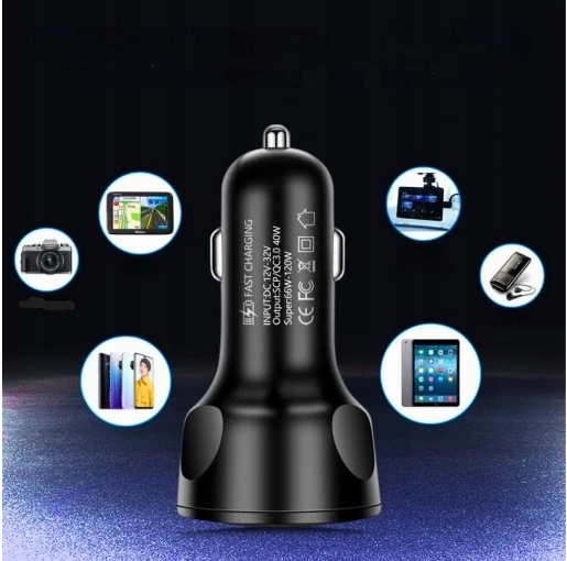Швидкий автомобільний зарядний пристрій потужністю 66W з універсальним кабелем 3-в-1є ідеальним рішенням для людей, яким потрібно швидко та безпечно заряджати свої мобільні пристрої.