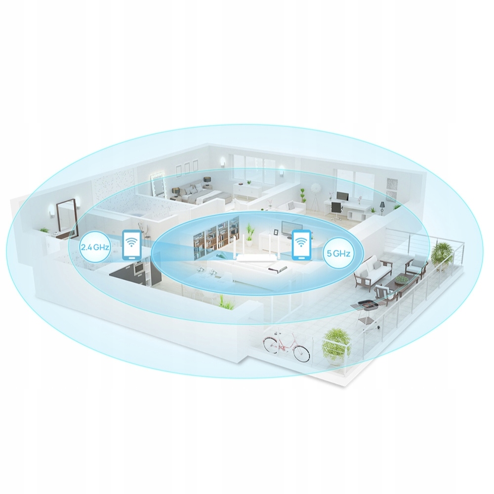 Маршрутизатор автоматично з'єднує пристрої з оптимальною смугою ( 2,4 ГГц або 5 ГГц ), що значно покращує якість з'єднань. band 5 ГГц гарантує швидкий доступ до Інтернету, ідеально підходить для потокових та онлайн -ігор, тоді як діапазон 2,4 ГГц забезпечує широкий асортимент у всьому будинку.