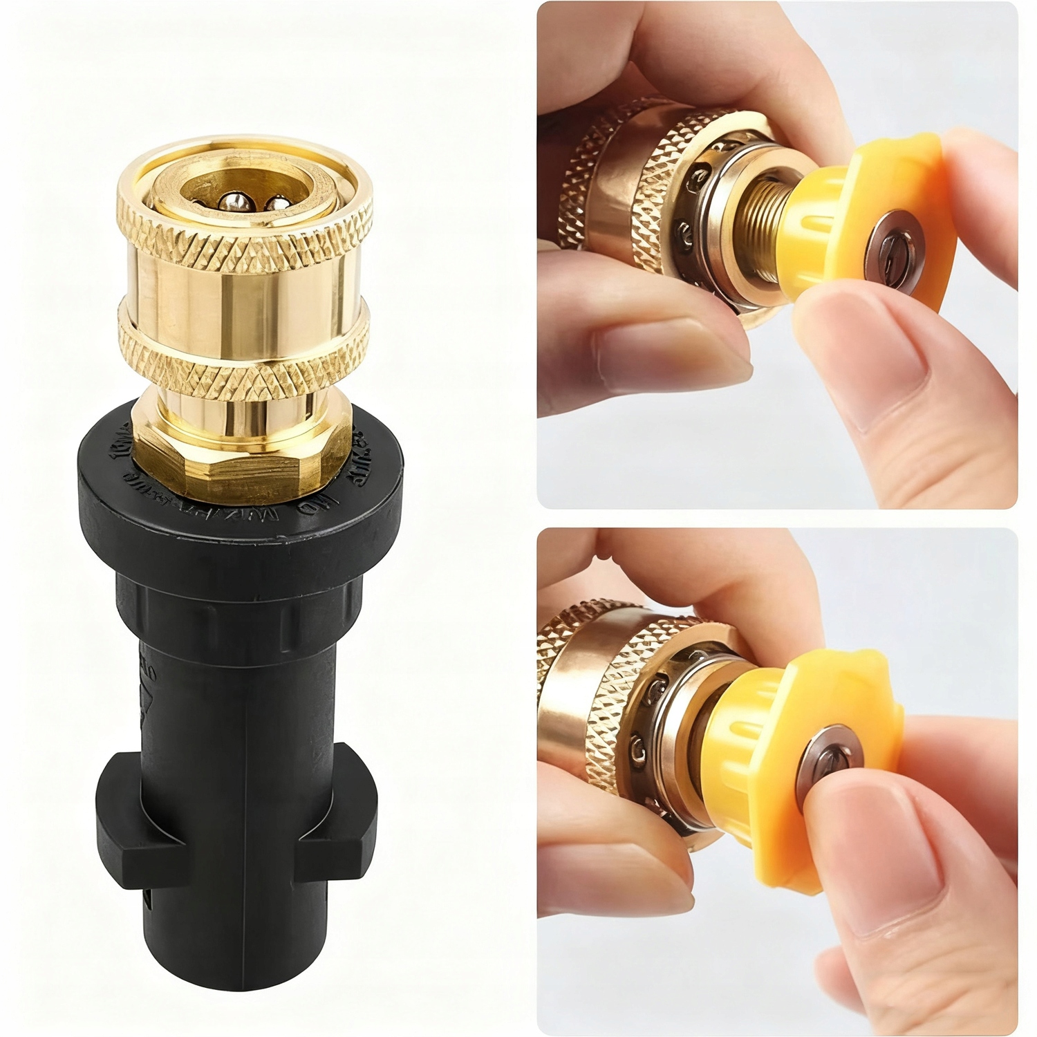 Стійкий матеріал. Цей швидкознімний адаптер для пістолета для мийки високого тиску виготовлено з високоякісної латуні та АБС-пластику та має робочий тиск до 4000 фунтів на квадратний дюйм