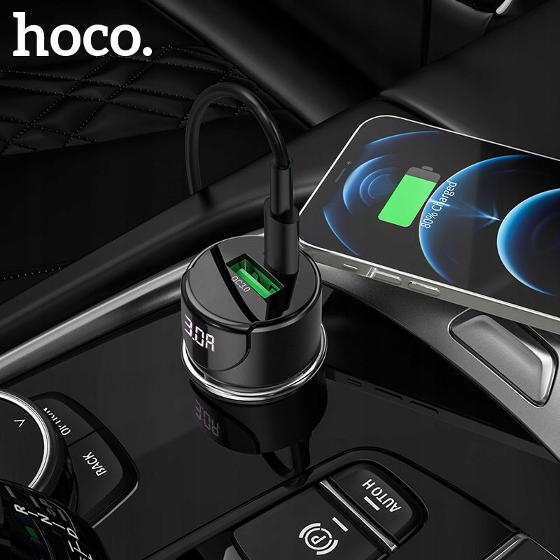 hoco Z42 Light Road b> — це автомобільний зарядний пристрій із двома USB-роз’ємами, одним QC3.0 / Quick Charge 3.0 типу USB-A потужністю 18 Вт і іншим USB Type / Type C. Type-C Power Delivery PD потужністю 20 Вт з підтримкою стандартів швидкої зарядки, таких як PD2.0 / 3.0, iPhone PD20W, QC3.0 / QC2.0 / Huawei FCP або Samsung AFC. Зарядний пристрій додатково має світлодіодний дисплей, який показує стан батареї на початку, після запуску двигуна та напругу та струм під час зарядки мобільного пристрою.