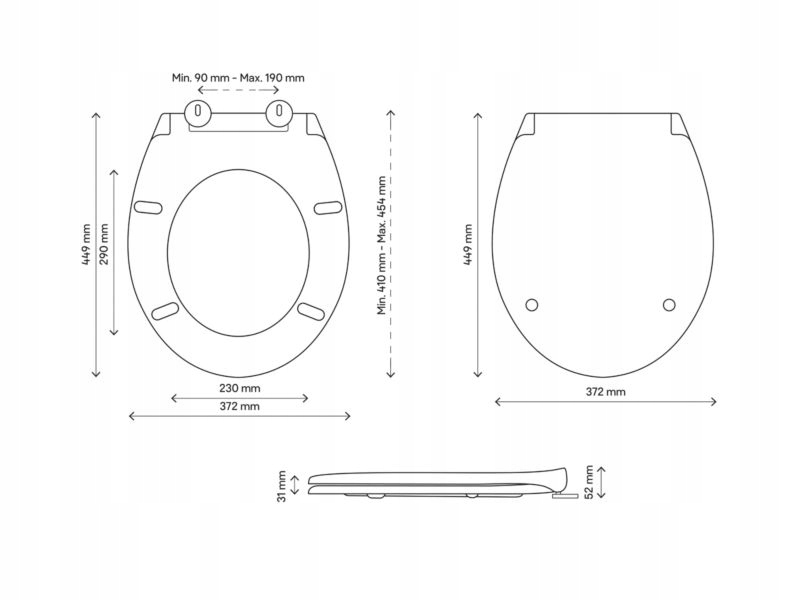 - Відстань між петлями 90 - 190 мм