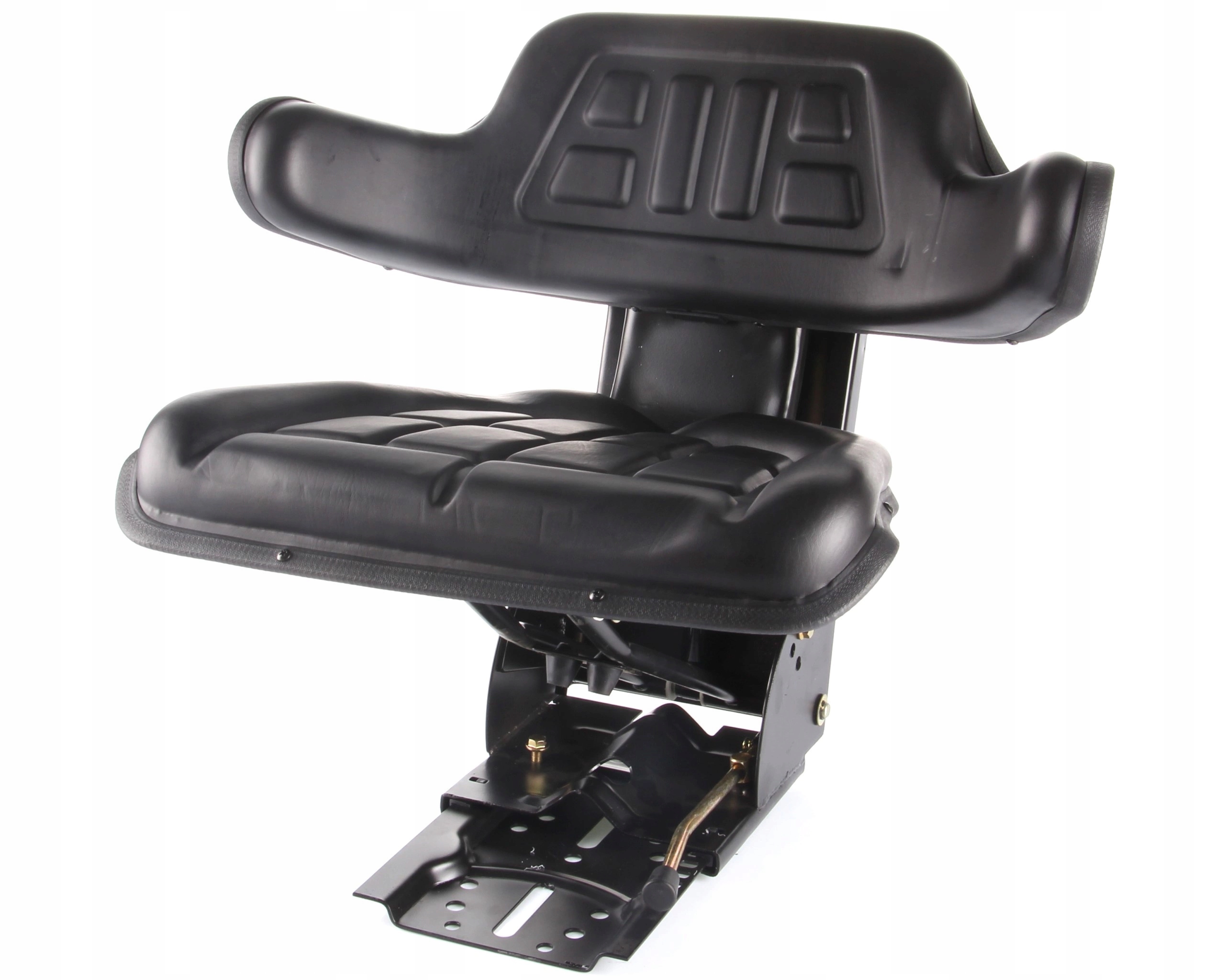 Сидіння для трактора або навантажувача, механічно амортизоване з підлокітниками. Сидіння особливо підходить для тракторів, сільськогосподарської техніки, навантажувачів і будівельної техніки. Має зручні підлокітники, що підвищують комфорт водія. Має регульований рівень амортизації в залежності від ваги оператора. Завдяки важелю ми можемо регулювати рух сидіння вперед і назад. Оббивка виконана з чорного пластику, міцного і легкого в догляді. Численні монтажні отвори в пластині дозволяють легко та ефективно встановити в підлогу машини. Додатковою перевагою є можливість регулювання кута нахилу спинки.