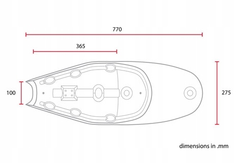Днище виготовлено з нефарбованого чорного ABS-пластику та оснащено піною товщиною 30 мм, покритою водонепроникною мембраною під синтетичною шкірою. оббивка.
