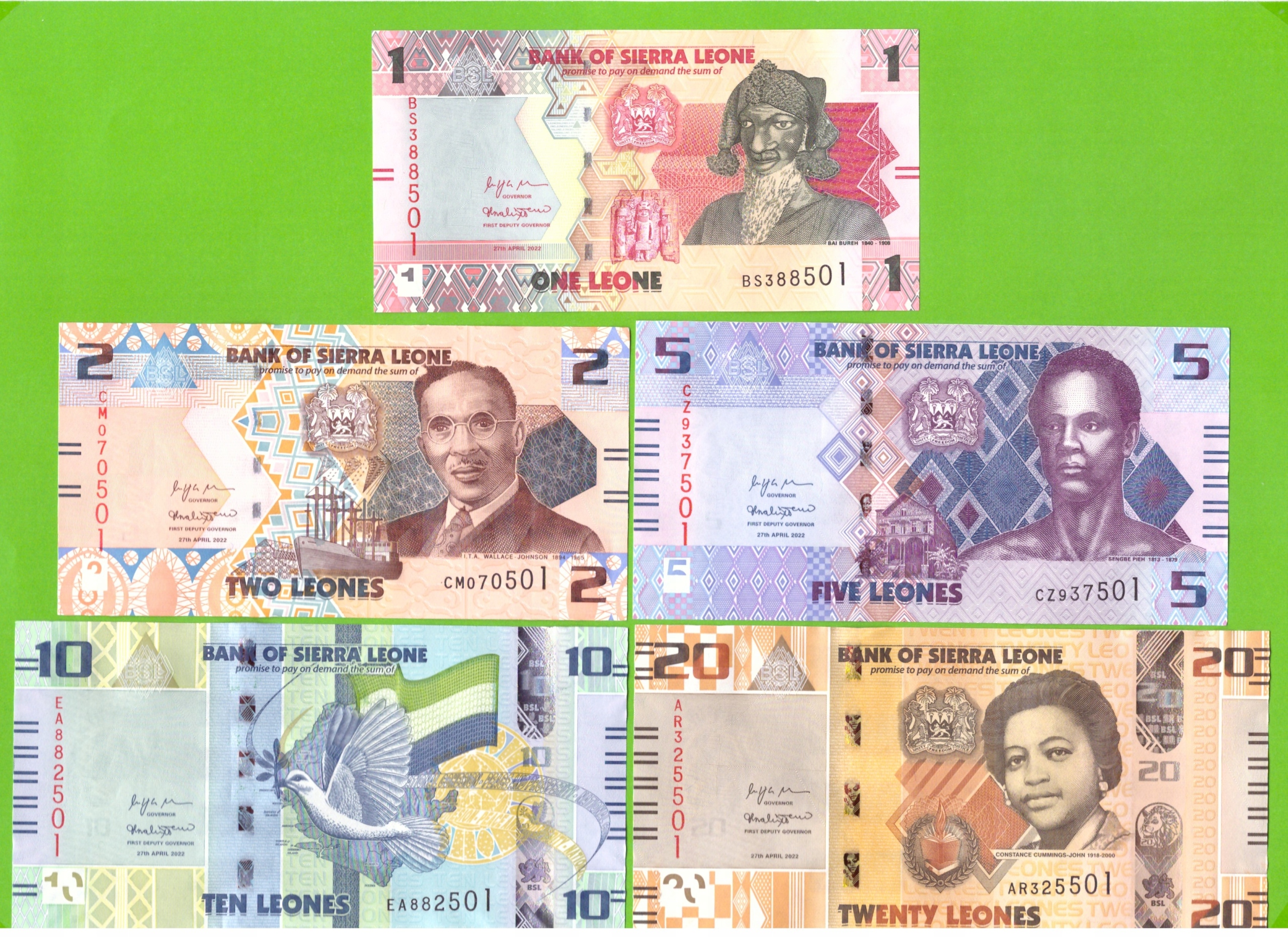 SIERRA LEONE SET 1,2,5,10,20 LEONES 2022 UNC . .501