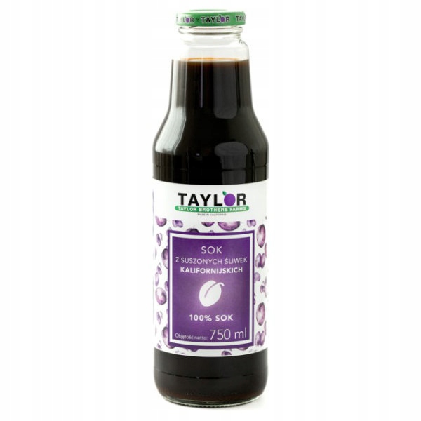Угорські сливи з... КаліфорніїНайкращі сушені сливи, з яких виготовляють сік Taylor, походять не з Угорщини, а з Каліфорнії, всупереч видимості. Саме тут вирощують найкращу угорську сливу, яку називають каліфорнійською. Цей винятково ароматний, міцний і смачний сорт гарантує відмінну якість соку без додавання штучних барвників, підсолоджувачів і консервантів. Чорносливовий сік Taylor California складається з 100% пастеризованого концентрованого соку. Такий натуральний склад гарантує відмінний смак і максимальну поживну цінність.