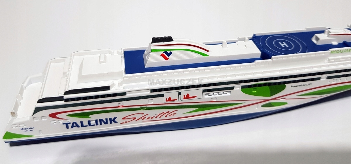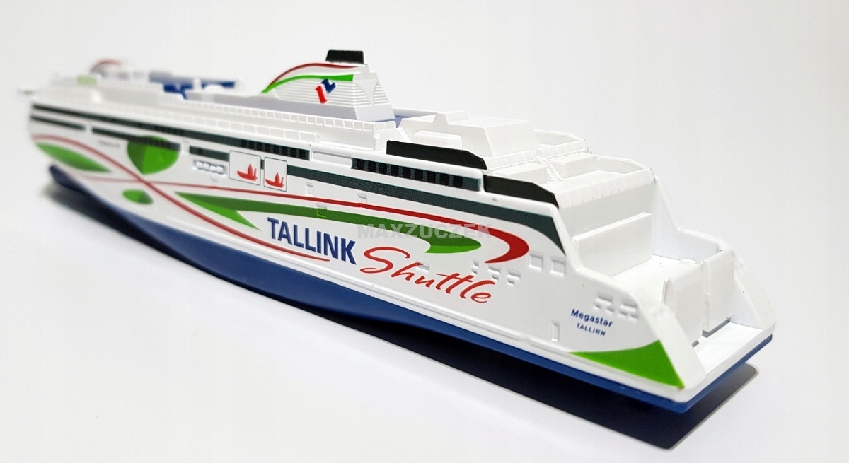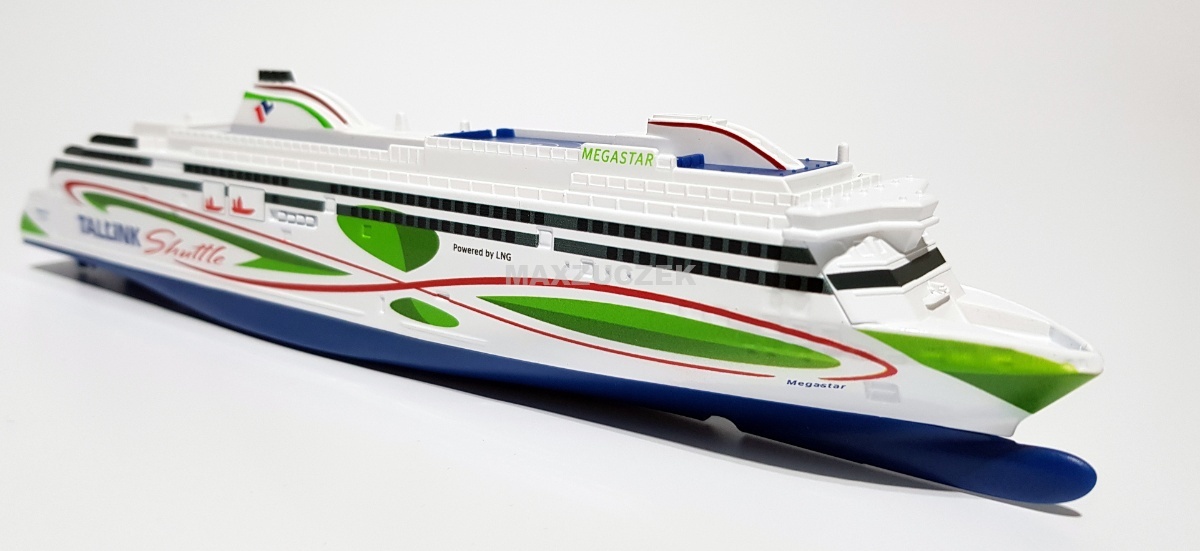 Tallink Megastar з'єднує Таллінн, Естонія, зі столицею Фінляндії - Гельсінкі, а перетин займає всього дві години. Пором довжиною 212,2 метра вміщує до 2800 пасажирів. На великій пасажирській палубі вони відчувають себе на ексклюзивному туристичному кораблі. Корабель, який розганяється до 27 вузлів, працює на екологічному газі. Модель Siku, введена в озброєння в 2017 році, скочується по рампі з акуратним оригінальним принтом. Модель з металу і пластику не підходить для плавання.