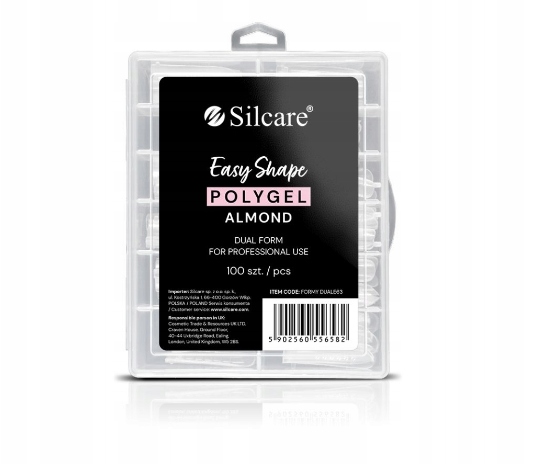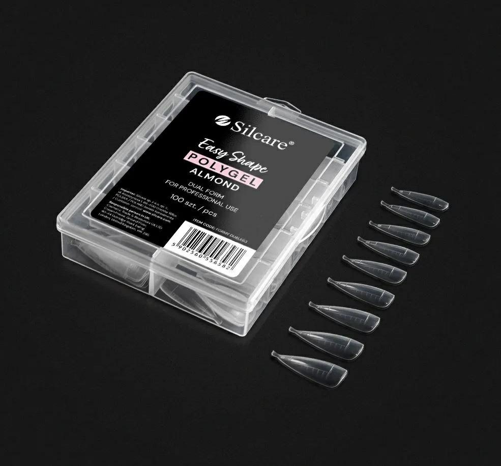 Набір Dual Form містить 100 шаблонів різного розміру, тож ви можете легко підлаштувати їх під розмір своїх натуральних нігтів. Верхні форми зручні у використанні, а заощаджений час можна використати приємним способом, наприклад, випивши чашечку улюбленої кави. Сучасний метод нарощування нігтів Dual Form - зручне рішення як для професіоналів, так і для початківців стилістів, а також для жінок, які створюють свої стилі вдома. Dual Formy Clear Almond - це прозорі багаторазові верхні форми для нарощування нігтів за допомогою акрилового гелю. Завдяки їм ви створите правильну форму своїх нігтів - відповідний С-вигин і верхівку. Кожен ніготь матиме однакову форму та довжину, оскільки шаблони мають точний тунель та лусочки. Виріб виготовлено з гнучкого та міцного ABS-пластику, тому надзвичайно легко відклеюється від акрилової гелевої маси та придатне для багаторазового використання.