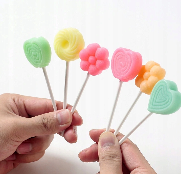 Силіконова форма для виготовлення льодяників у формі ялинки, шапочки Діда Мороза, ведмедиків та квітів. Його також можна використовувати для приготування прикрас для тортів. Має отвори для паличок (8 паличок в наборі).