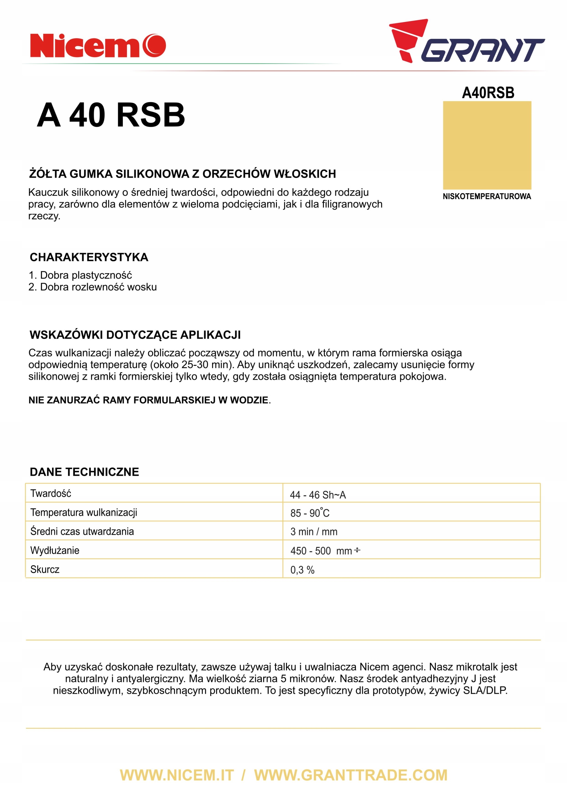 Силіконова гума для форми 90°C A 40 RSB "Nocciola" жовта NICEM